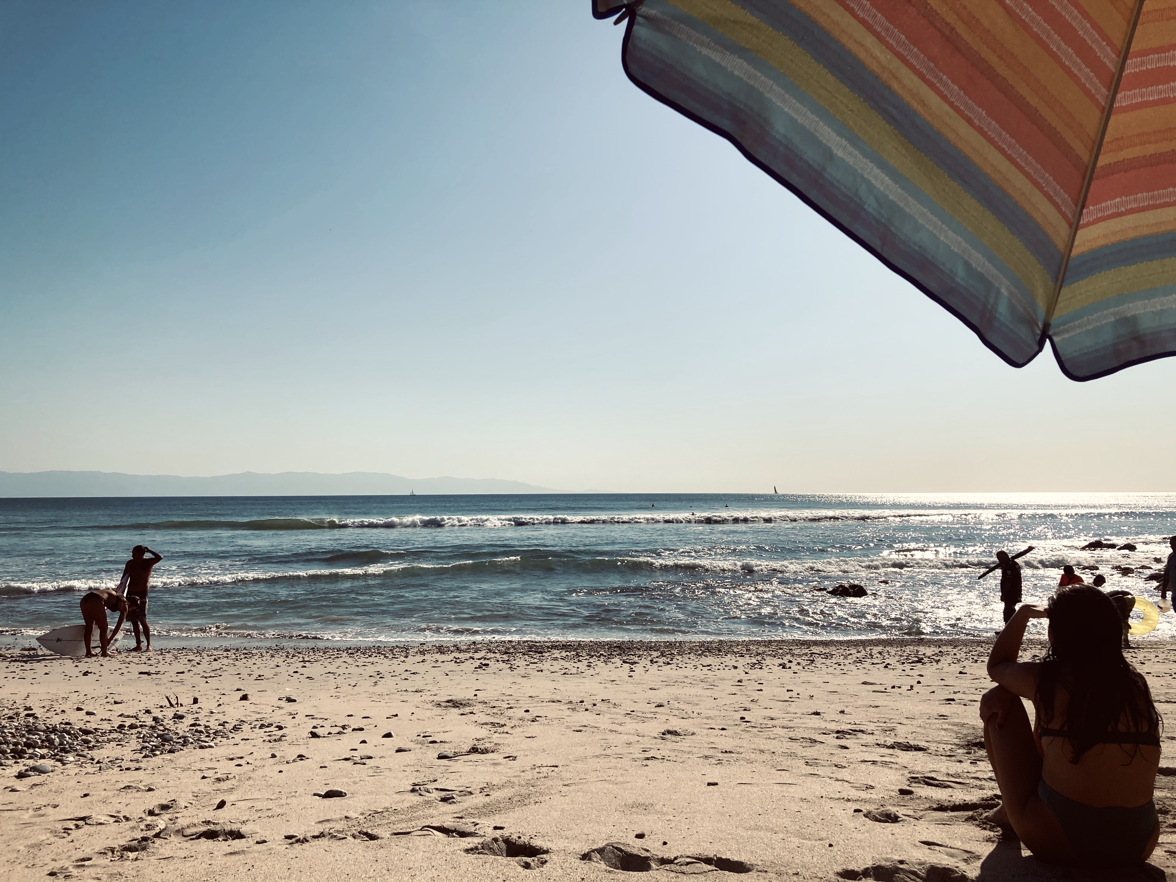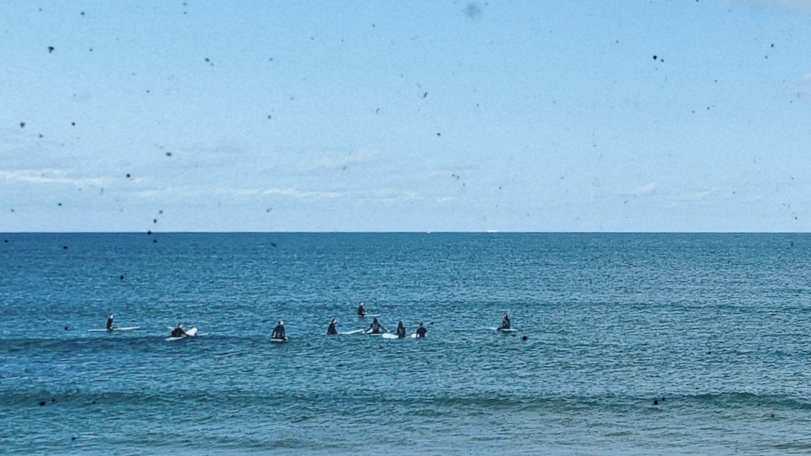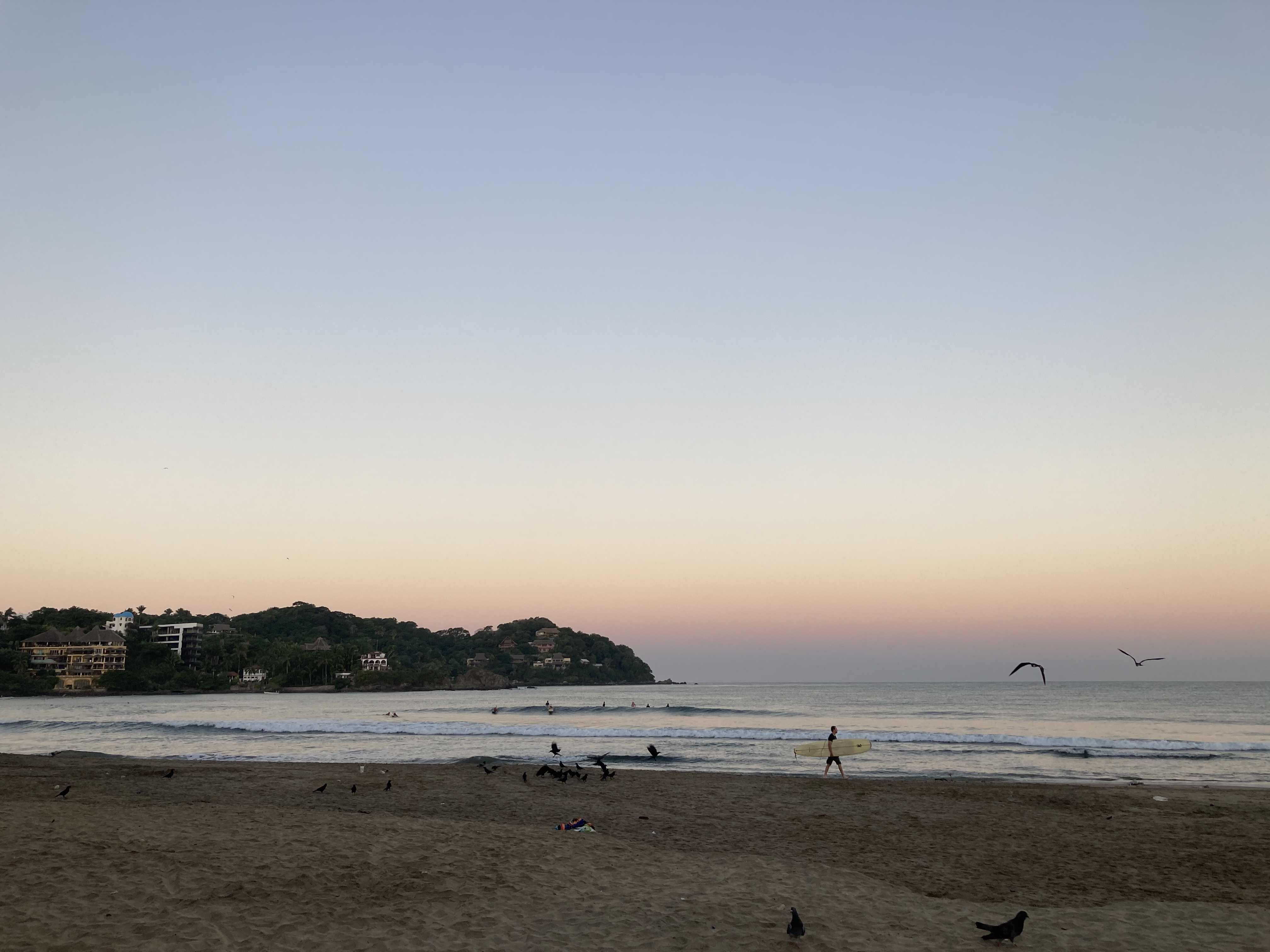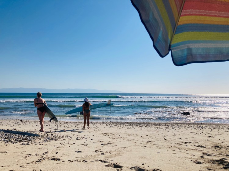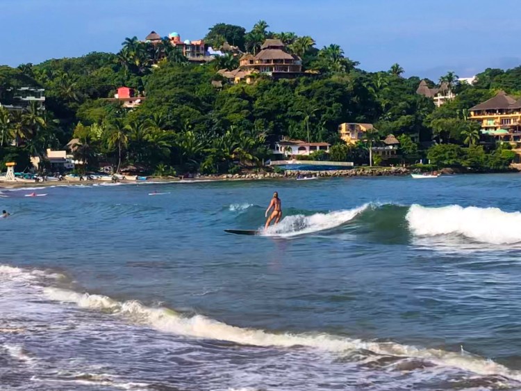 A chilled beach town with small waves.