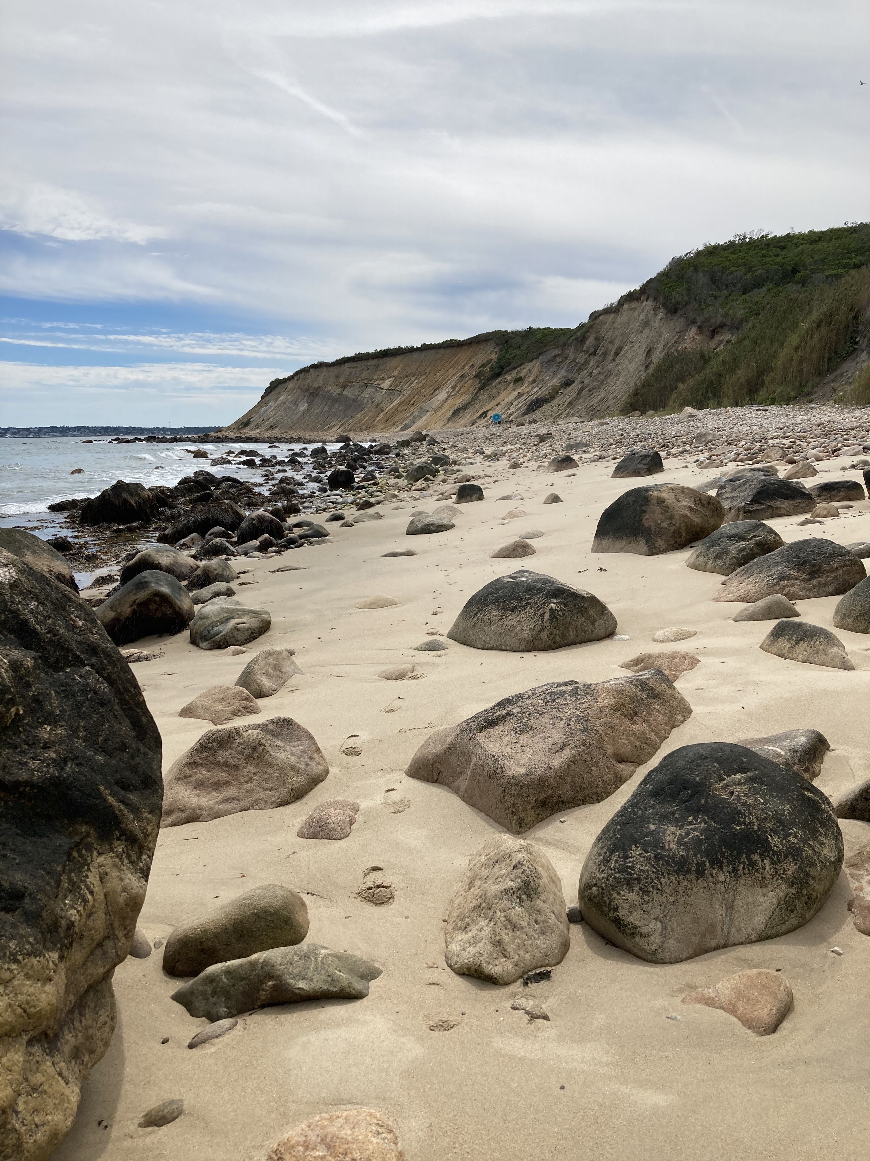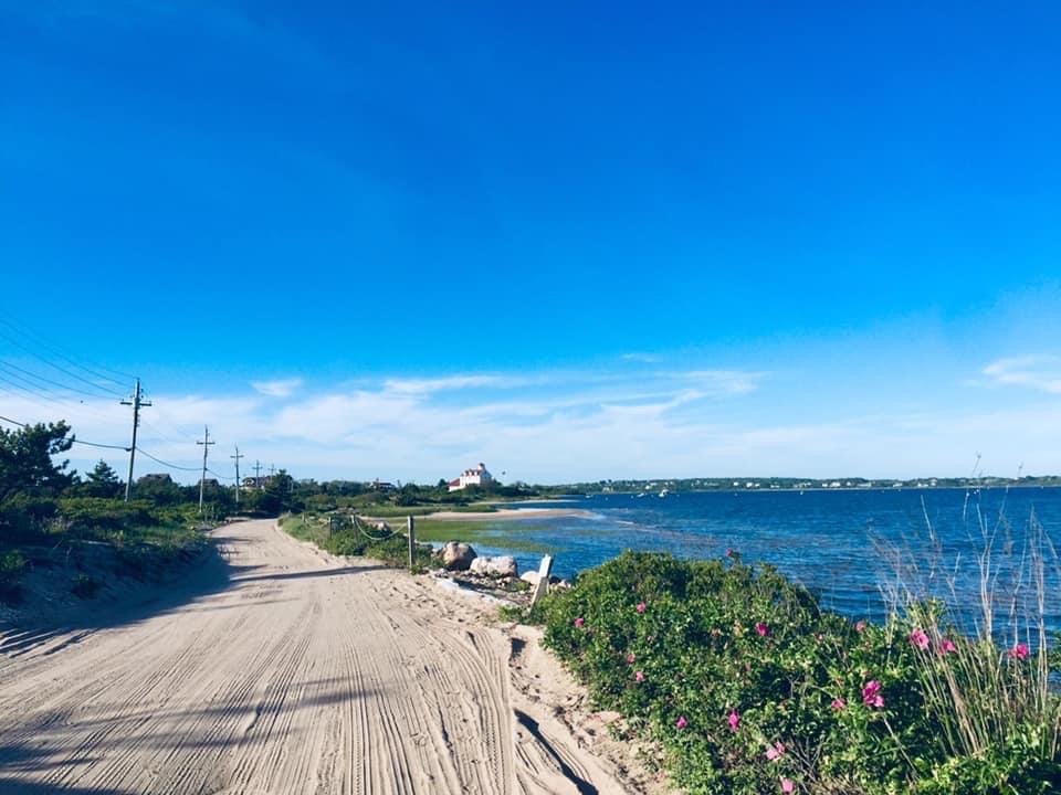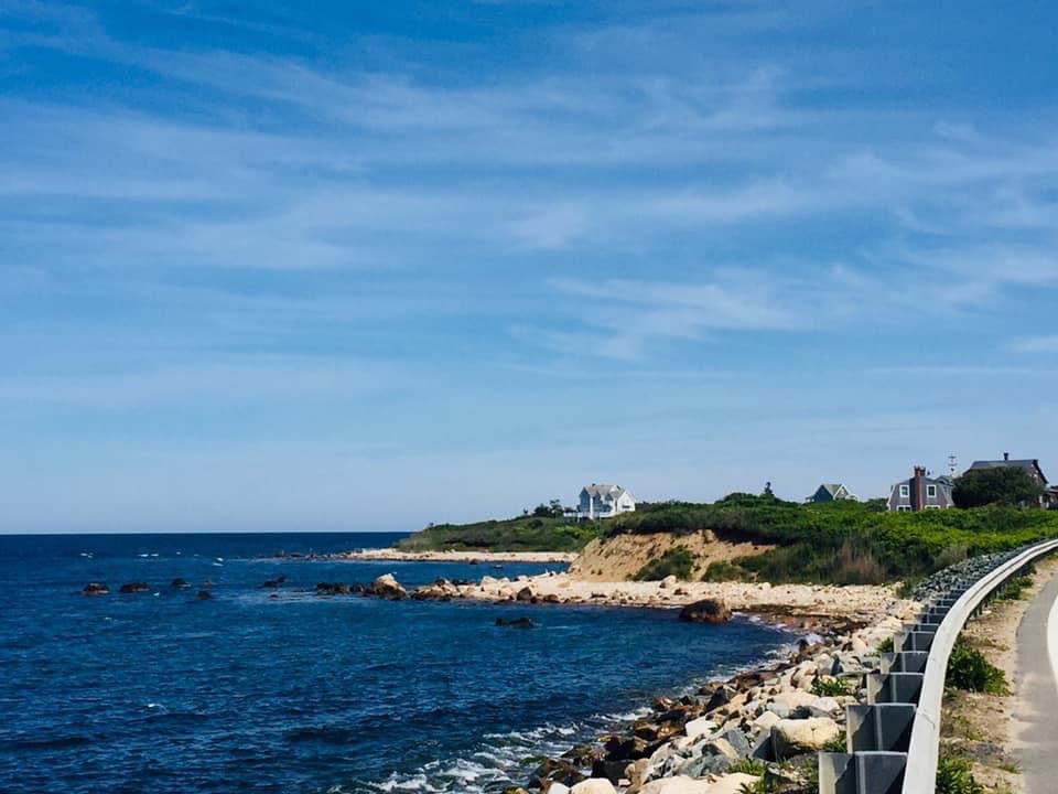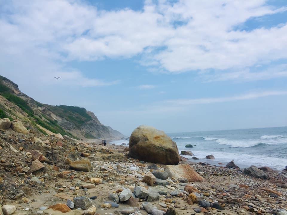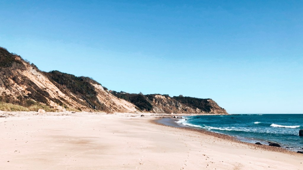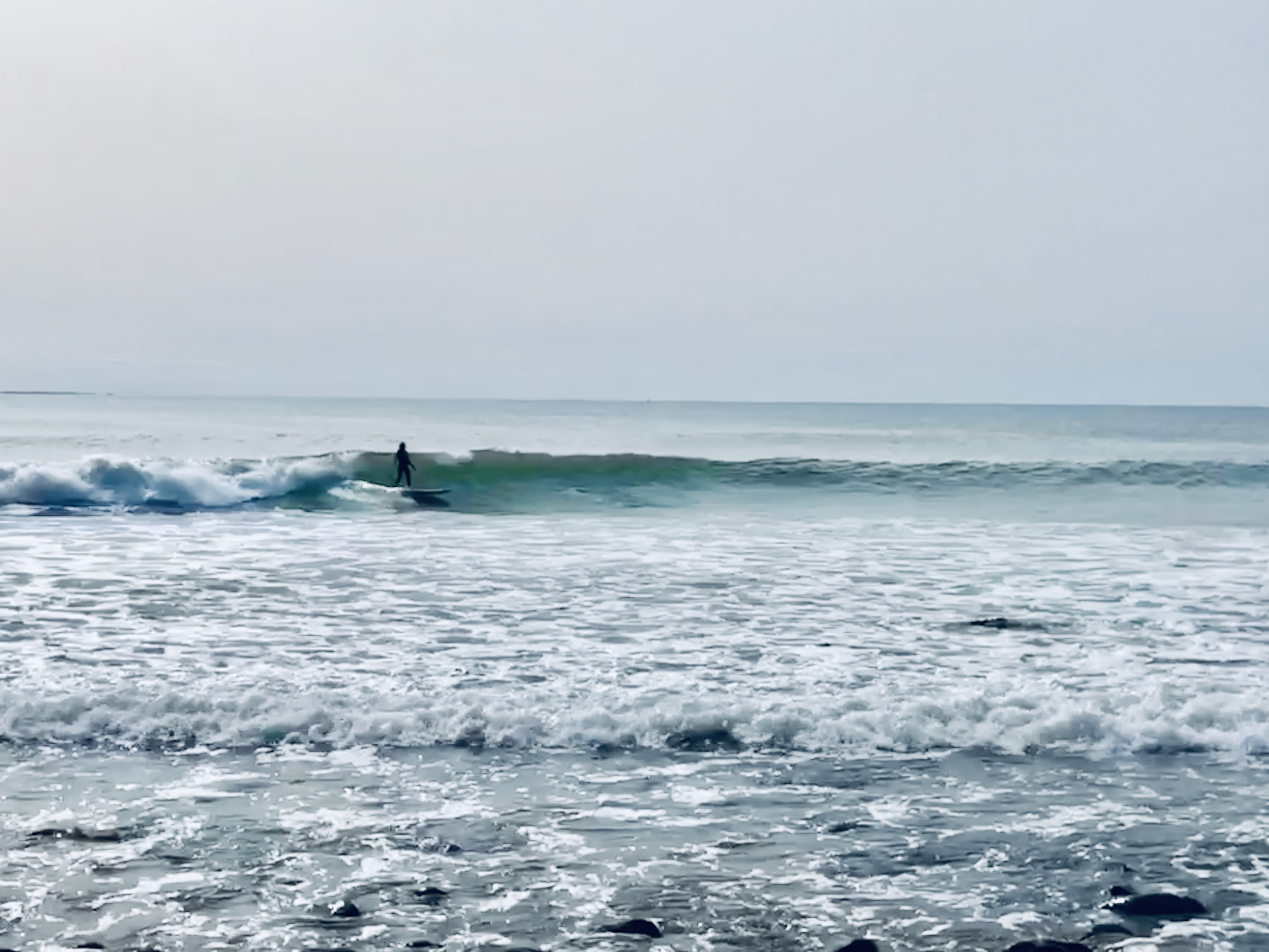 A chilled beach town with small waves.