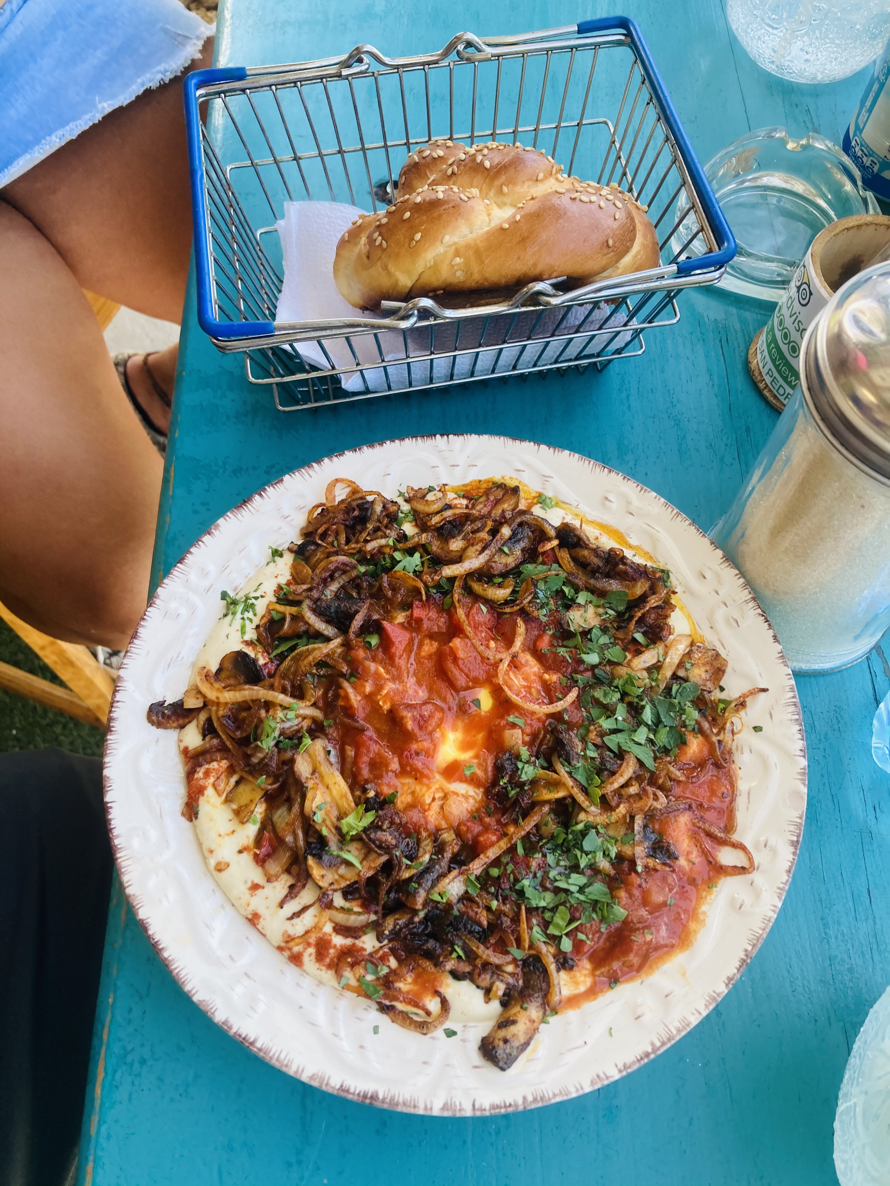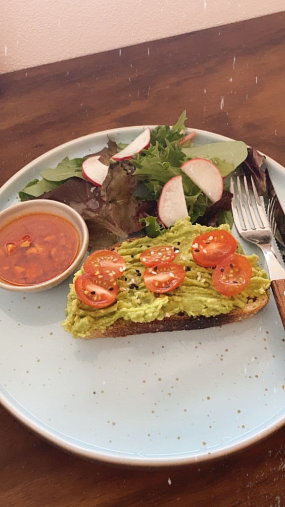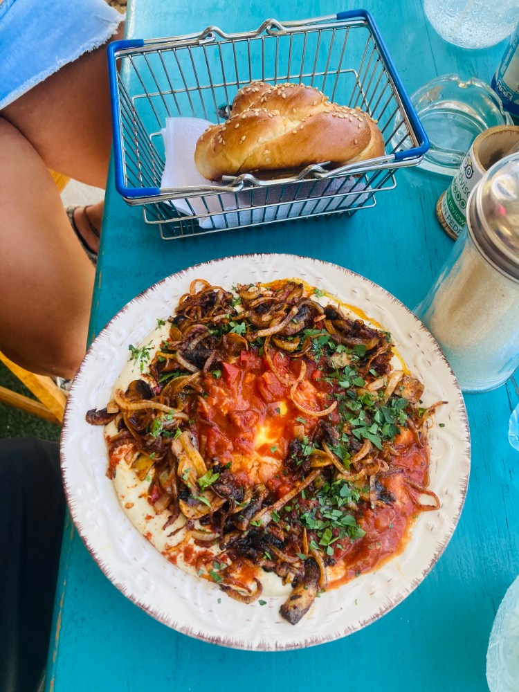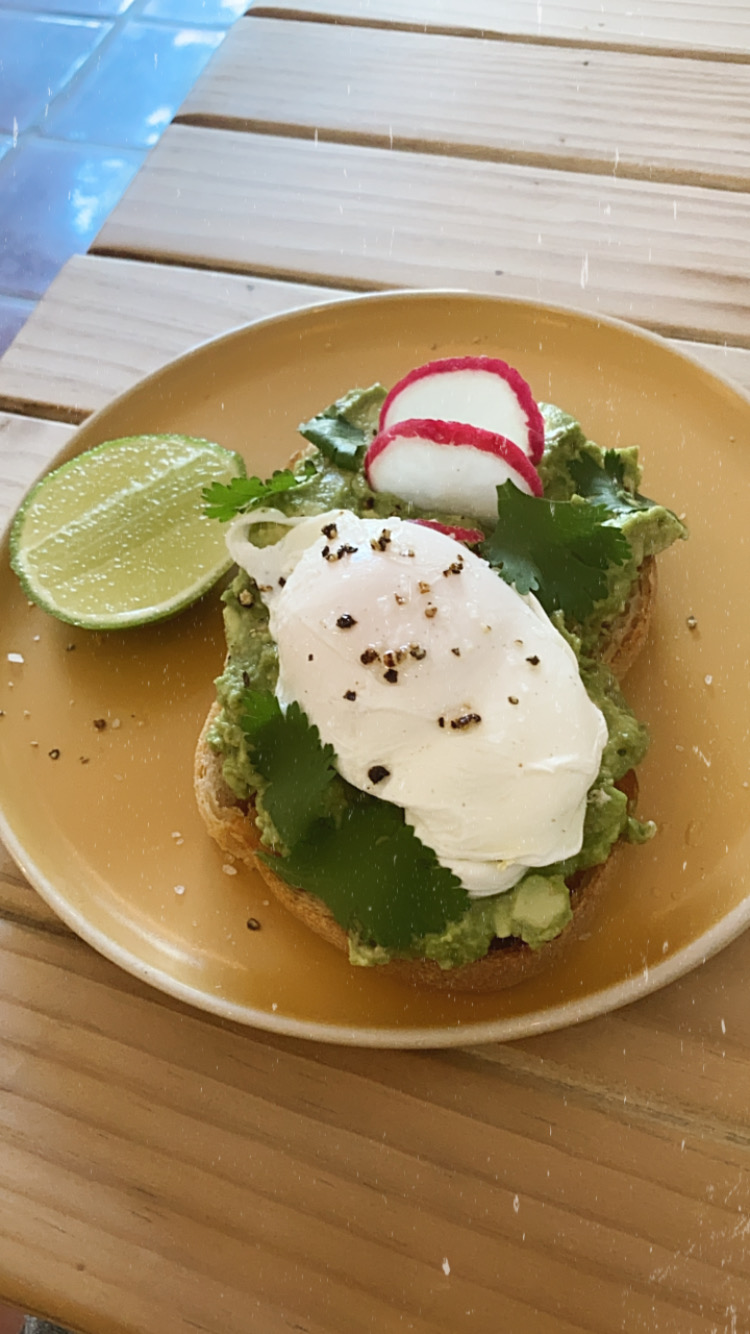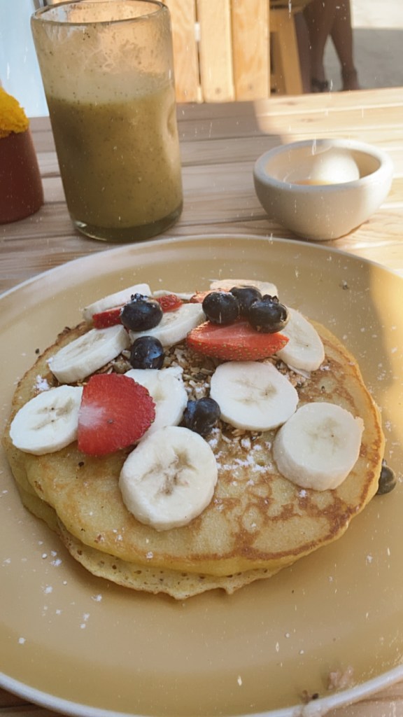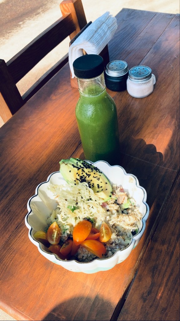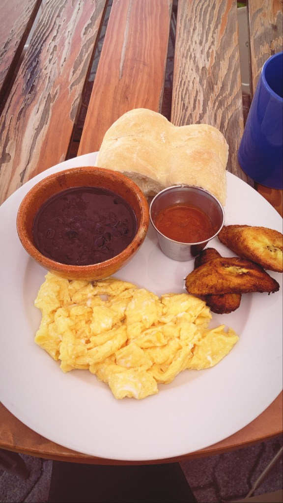 -Destiny: A more expensive restaurant that serves healthy dishes and awesome smoothies. Below is avocado and eggs on fried plantain – filling and delicious.