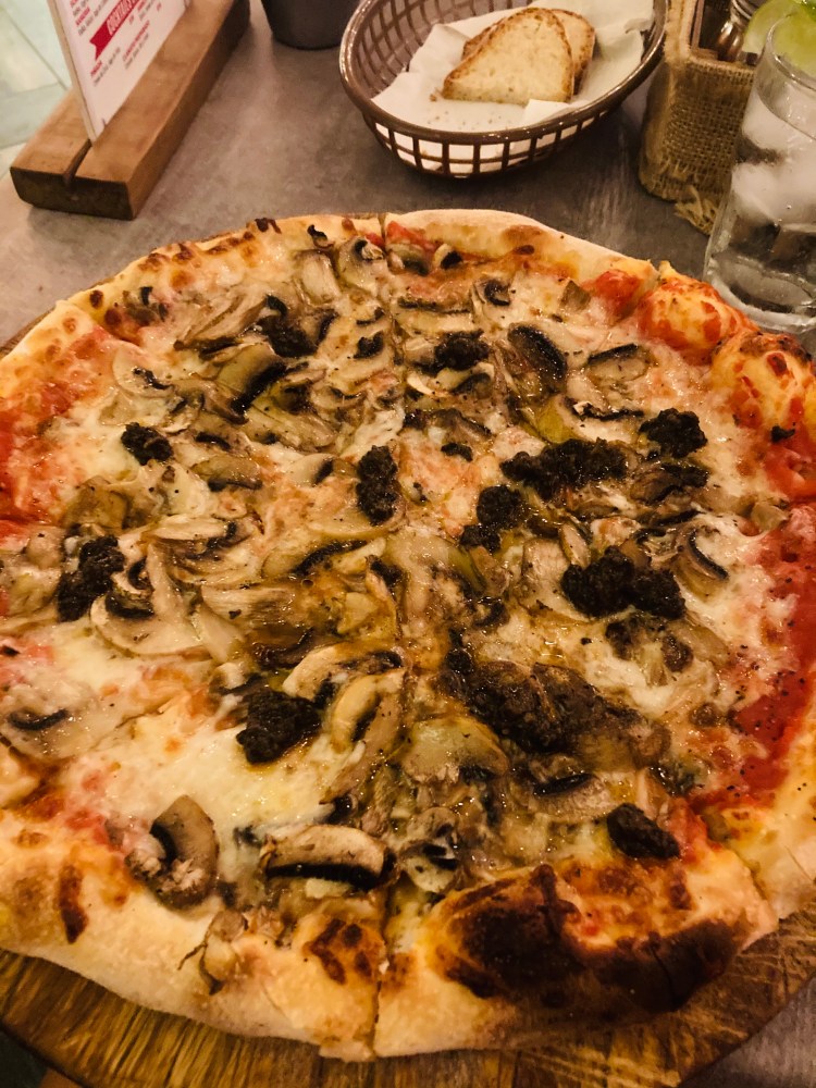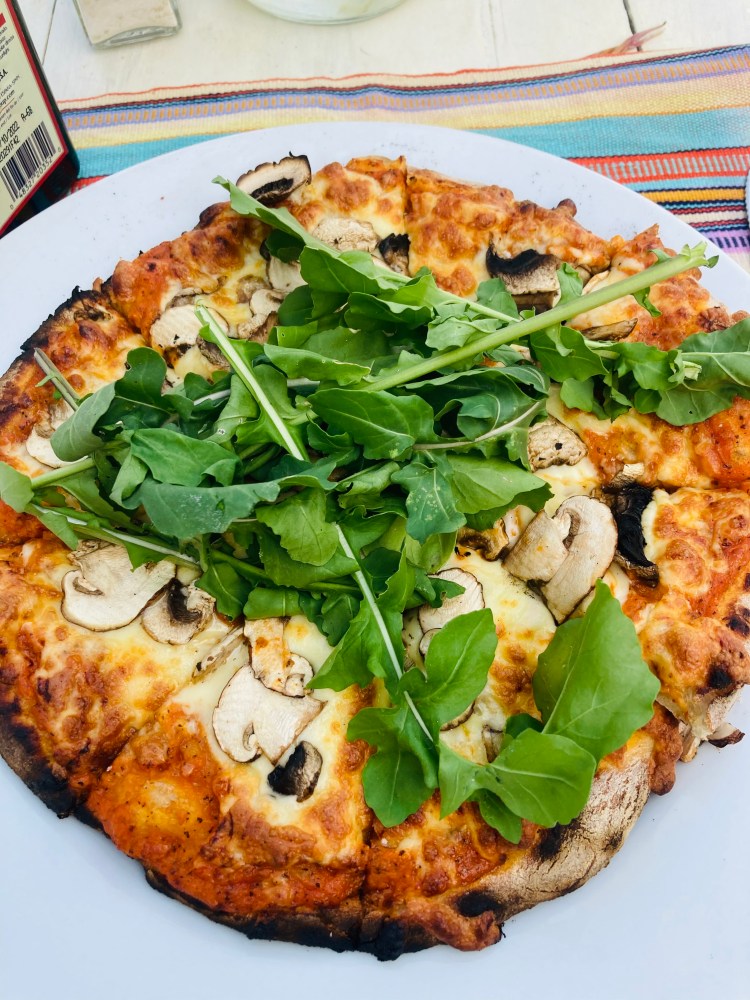 -Anch’io Pizza: Right around the corner from Arenal Backpackers Resort. We had the Margherita and chicken and avocado pizzas. Very good with lots of flavor!