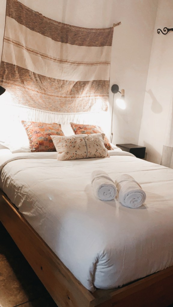 -The Bustel: A renovated bus parked a minute from the beach. The Bustel has a queen bed, two bunk beds, a fridge, oven, dishes, 3 fans, toilet, games, and there is an outdoor shower. Kali and I stayed here two nights and loved our time on the Bustel! You can book the Bustel on AirBnB and check it out on Instagram and Facebook. The bus was parked in Manuel Antonio in a quiet and not too touristy area. We loved having our own space, outdoor showers, and the beach so close. The bus cooled down at night so much that I woke up cold once and threw on a sheet. We were parked right near a nice restaurant where we went for a few of our meals and could use their Wi-Fi. Arnaud is the owner and answered all my questions, met us on time at the bus, gave us a good run down of the bus, and was very helpful. If you are looking for a quiet escape this is the best and unique way to do it!