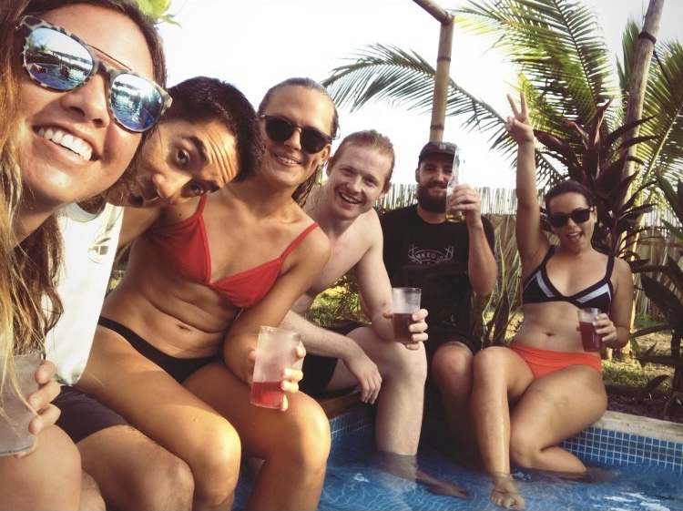 -Room2Board: A minute walk to the beach and surf! Surf rentals, lessons, tours, yoga, massage, breakfast lunch and dinner, a bar, rooftop with hammocks, co-working space, communal kitchen, pool, and a free hike. (Where I volunteered in reception for 3 months)