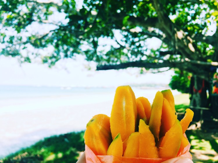 We went back to camp and chilled from 10-2 around the pool. The waves weren’t great until later so we had a little break. We ended up going back to Padang Padang and I was pretty exhausted and the waves were small so I only stayed out for an hour and came in. We all had a break and I bought a delicious banana pancake. I wasn’t feeling the afternoon sesh and took a nap on the beach until the group came back in. We went back to camp, chilled by the pool and got ready to go to Bingin beach to catch the sunset and have dinner. I rode on the back of Sev’s scooter and Ahmed and Rene had the other. The rest of the people went in a van. We grabbed some fresh grilled corn on the way down to the beach and watched the sunset in front of a restaurant called Lucky Fish. Half of the people bought fish there and the rest of us went to Kelly’s for burgers and smoothies. I ended up seeing two of the girls from the camp I had met a few days before so we caught up. Then we headed back up all the stairs to Cashew Tree- a cool outside bar with live music. The first guy who sang was so good and a bunch of little kids were dancing up front. We all sat on cushions and talked and headed out shortly after the second band started as they were more hard rock. We raced back and lost at the driveway which is a steep gravel road with rocks- I was okay with it as Ahmed flew down it. We played a bit of pool before we were sent to bed before 11 thanks to our early morning sesh at Balangan.