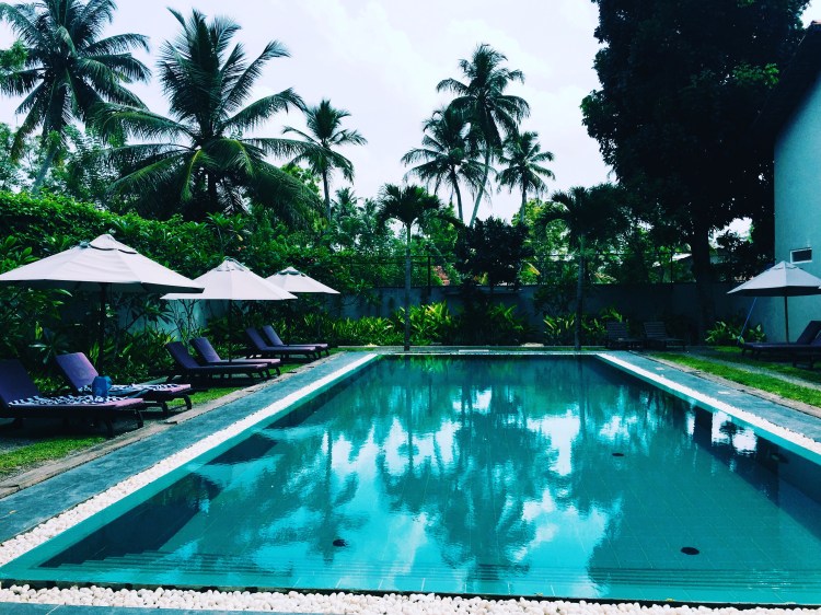 We headed back to Jimbaran Beach where the beginners were surfing and got lunch. We didn’t have a lot of time as we were headed to Nusa Dua for the second session and was racing against the tide. I had a BELT sandwich and fruit salad. There were two guys there from Europe – Dom and Tim who were hilarious together. We all had ordered our lunch at the same time but for some reason Dom’s took soo long! He had shrimp kebabs and rice so we were all teasing him they had to go out and catch it first since Jimbaran is a well-known fishing beach. I even was finished with my fruit salad which came as a dessert before he had his meal. Poor guy.We then drove to Nusa Dua- a gorgeous well-manicured tourist area. We hugged the right side of the beach paddling out in the channel between the cliff and a rock maybe 30 feet from it in the ocean. Shortly after we got comfortable a huge wave popped up- it was pretty choppy and waves were unpredictable – and took me and Rene for a good smashing. We then had to paddle back all the way around the rock and by the time we got back we only had time for one more wave before we had to head in as the tide was getting low and the coral getting closer than we would prefer. I just caught some whitewater and rode it all the way to the beach. Kedek- one of our guides broke off a fin on the coral but that was all for casualties. We went back to the camp, chilled by the pool and then had dinner- meeting the new arrivals. After dinner Isabel and I played pool with Ahmed and Sev and Sev and I won every game amazingly. We talked for a bit more before the boys were off to bed as their session was leaving at 5:30 the next morning and ours was at 8.